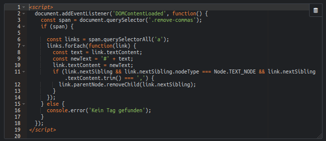 Im Beispiel wird der HTML Block direkt unterhalb der Schlagwörter platziert.